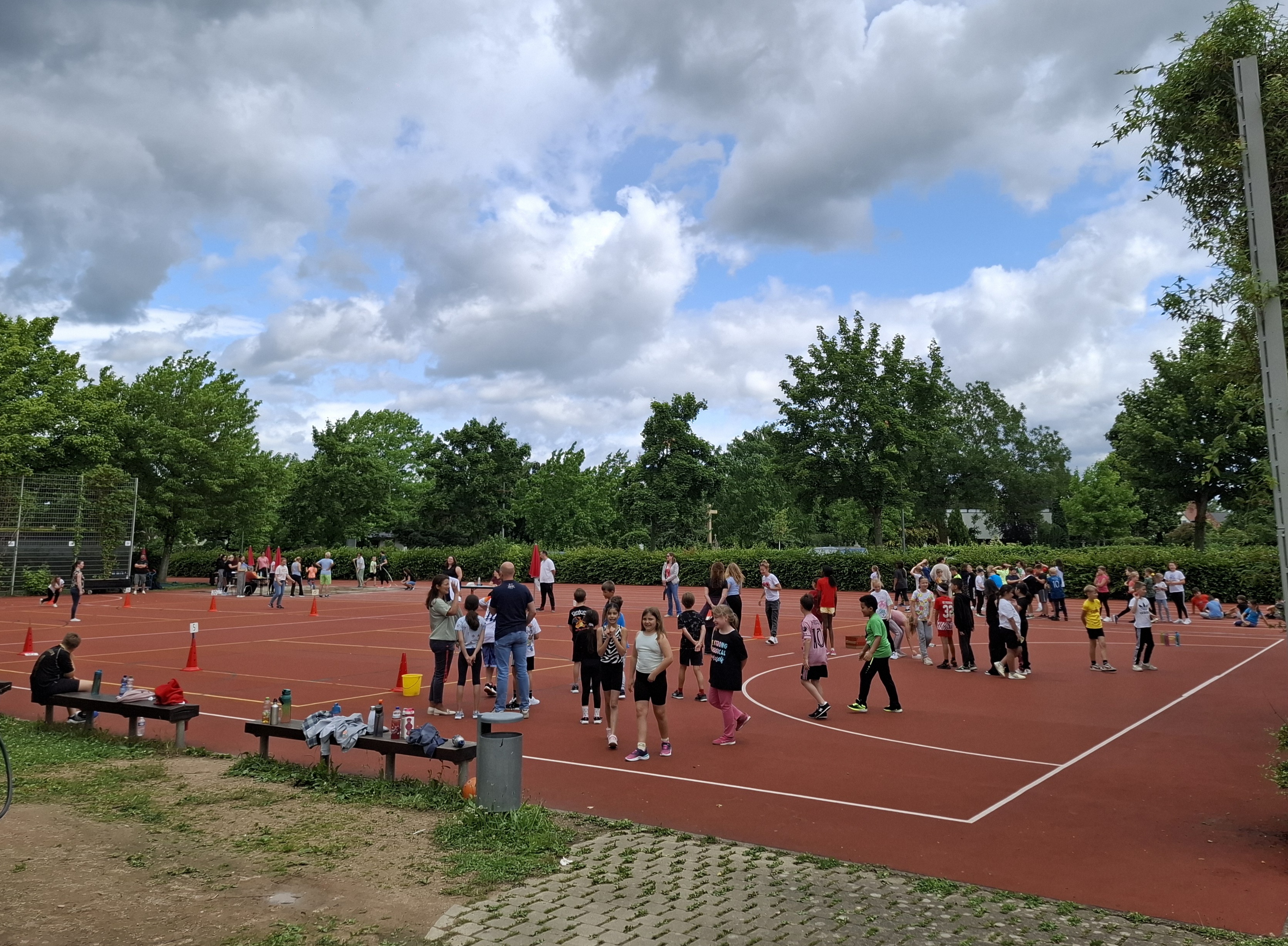 Am Freitag vor den Pfingstferien war es wieder soweit: die Bundesjugendspiele für die Klassenstufen 3 und 4 fanden statt. Ein großes Event, nicht nur für die teilnehmenden Schülerinnen und Schüler, sondern auch für die logistische Organisation, denn alle Klassen, auch die der Außenstellen in Zienken und Grissheim, waren mit von der Partie. Dank der einsatzbereiten Helfer aus der Elternschaft konnten die Kinder bei lockerer Atmosphäre ihr Können unter Beweis stellen und Punkte sammeln. Das Wetter war dieses Jahr ideal für ein Sportevent: Sonne, Wolken, trocken, nicht zu heiß!